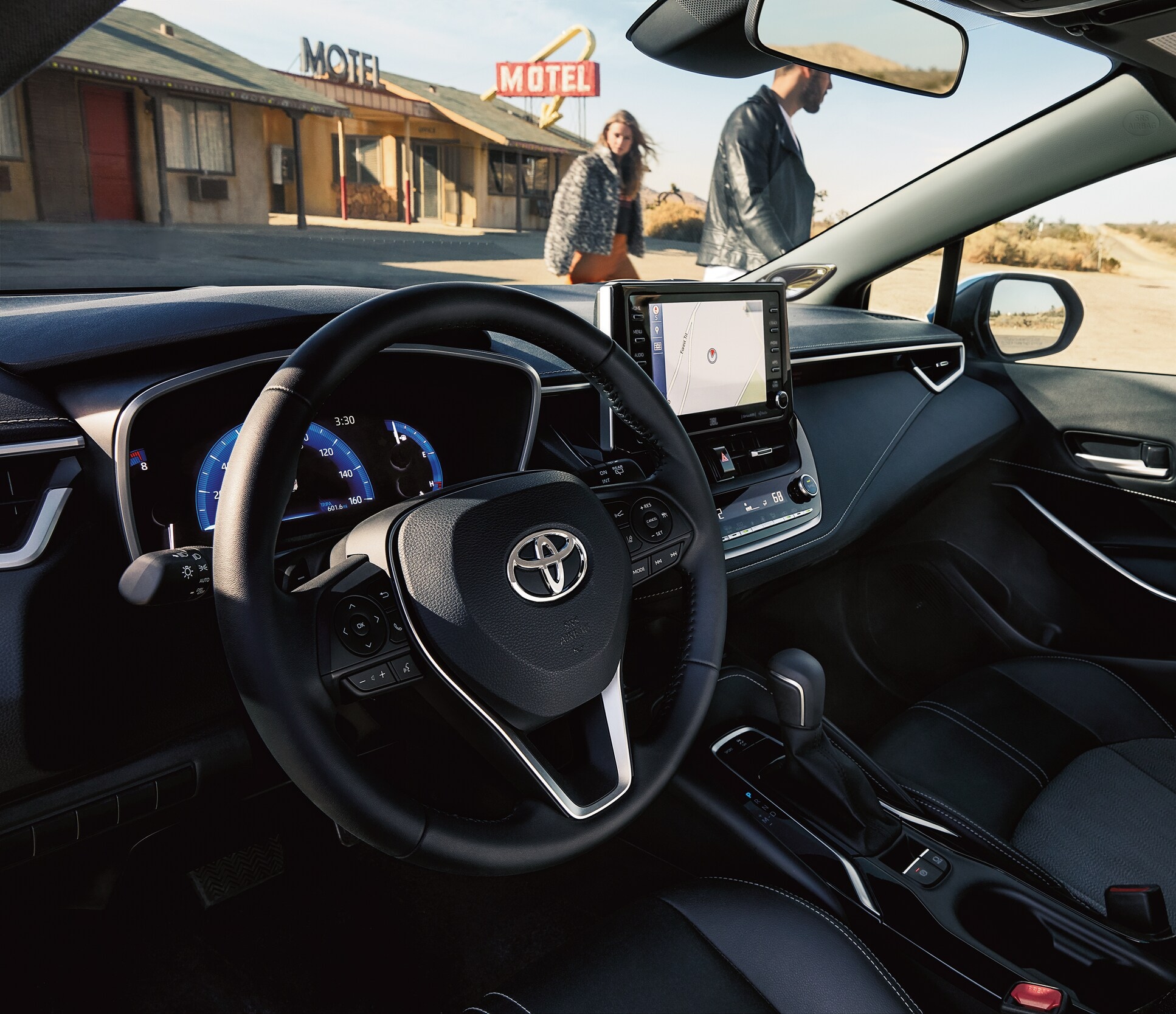 Inside the 2026 Toyota Corolla, you'll find a spacious and well-designed interior with seating for up to five. Automatic climate control, premium fabric or SofTex-trimmed sport seats, and a leather-wrapped steering wheel create an inviting atmosphere. The Toyota Corolla offers a host of convenient tech features, such as: