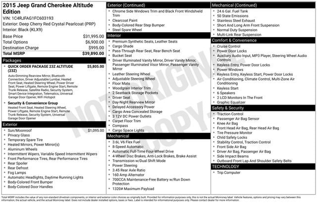 Don't miss your chance to experience the exceptional value and capability of this 2015 Jeep Grand Cherokee Altitude. Visit our showroom today and let us demonstrate how this exceptional SUV can enhance your driving experience.