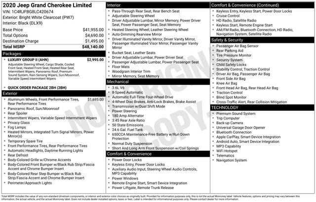 With an EPA-estimated 18 city/25 highway MPG, this Grand Cherokee delivers impressive fuel efficiency without sacrificing its impressive capability. Whether you're embarking on a family adventure or seeking a luxurious daily driver, this 2020 Jeep Grand Cherokee Limited is the perfect companion.
