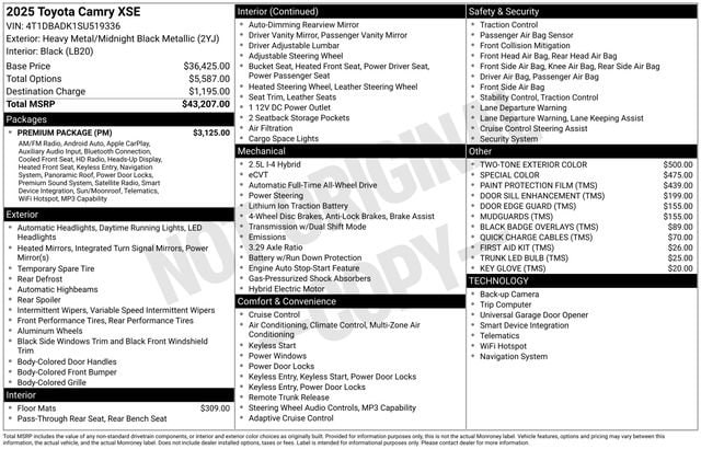 Heavy Metal/Black 2025 Toyota Camry eCVT AWD XSE 4D Sedan